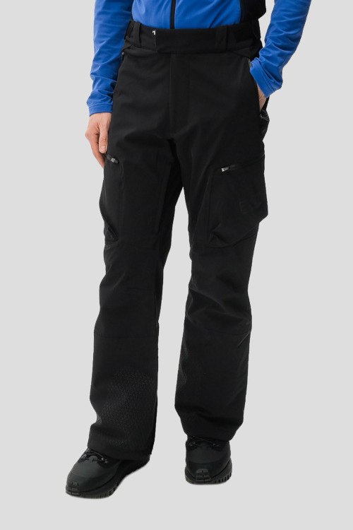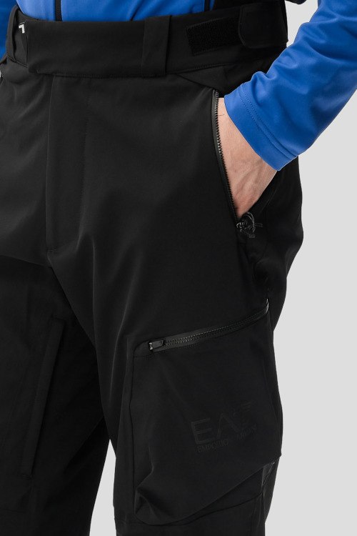 Детали: Мужские черные лыжные брюки из полиамида и эластана от EA7 Emporio Armani (ЕА7 Эмпорио Армани). Классическая длина, модель с мембраной Dermizax®, водонепроницаемая модель, проклеенные швы, регулируются липучкой на талии, прорезные карманы на молнии