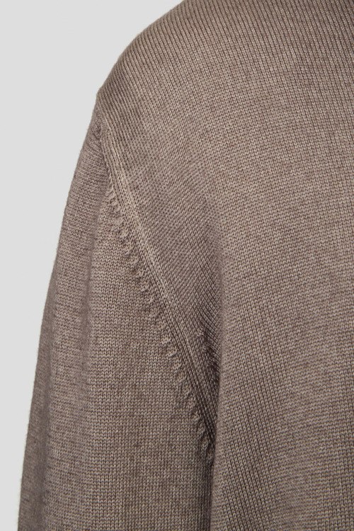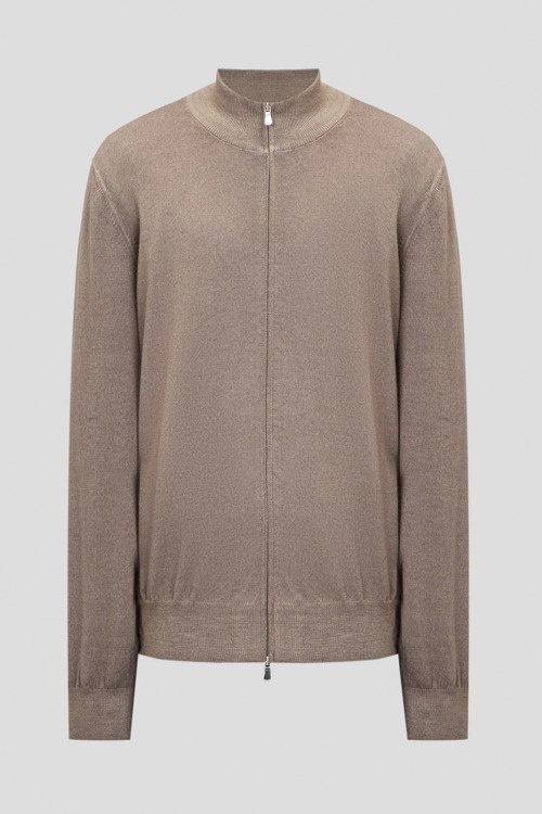 Детали: Мужской темно-бежевый шерстяной кардиган от Barba Napoli (Барба Наполи). Высокий воротник-стойка, застежка на молнию, манжеты и низ изделия в рубчик. Измерения: длина рукава: длинный, для размера 50 - 65 см, обхват груди: для размера 50 - 108 см, обхват талии: для размера 50 - 104 см, длина изделия по среднему шву спинки от горловины: для размера 50 - 68 см. Производство: Италия