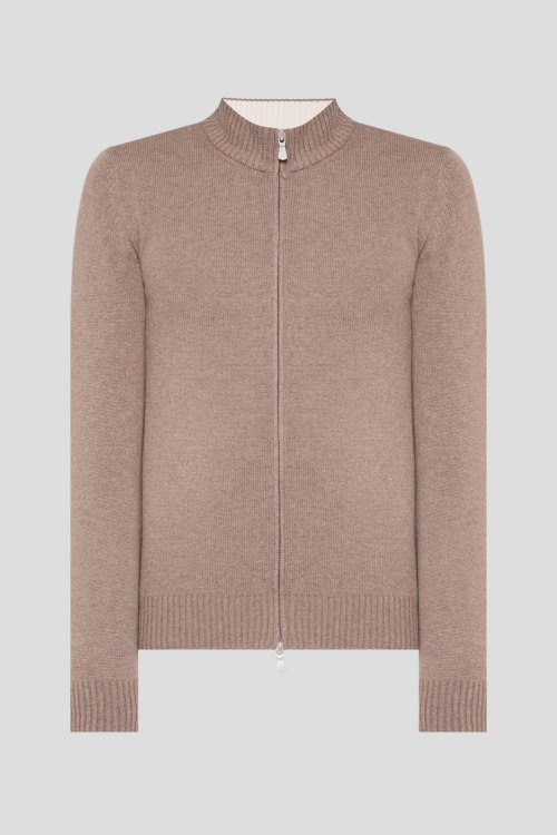 Детали: Мужской бежевый кардиган из микса шерсти, кашемира и вискозы от Barba Napoli (Барба Наполи). Классическая длина, воротник-стойка, застежка спереди на молнию, отделка в рубчик на манжетах и по низу изделия. Замеры: длина рукава: длинный, для размера 50 - 67 см, обхват груди: для размера 50 - 114 см, обхват талии: для размера 50 - 108 см, длина изделия по среднему шву спинки от горловины: для размера 50 - 68 см