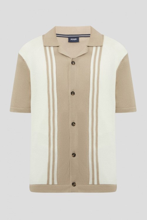 Детали: Мужской бежево-белый хлопковый кардиган от Joop! (Йооп!). Комбинация цветов, отложной воротник, застежка на пуговицы, короткий рукав, классическая длина. Длина рукава: короткий, для размера M - 25 см, обхват груди: для размера M - 110 см, обхват талии: для размера M - 104 см, длина изделия по среднему шву спинки от горловины: для размера M - 68 см