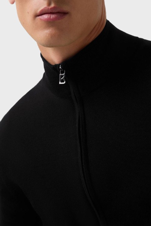 Детали: Мужской черный шерстяной кардиган Oscar от Bogner (Богнер). Воротник-стойка, боковые карманы, застежка-молния, классическая длина, ребристые манжеты и нижний край