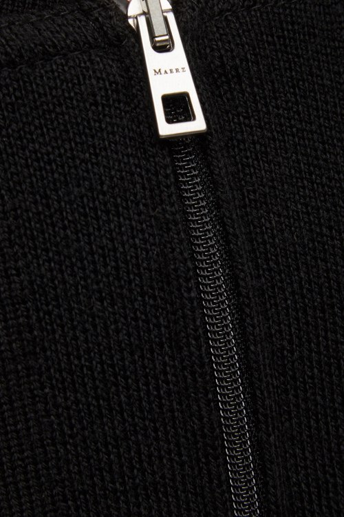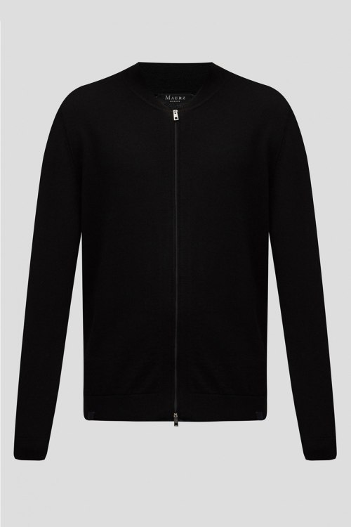 Детали: Мужской черный шерстяной кардиган от Maerz (Маерз). Застежка на молнию, длинные рукава, трикотажная резинка на манжетах и по низу изделия, патч-лого. Измерения: длина рукава: длинный, для размера 50 - 67 см, обхват груди: для размера 50 - 112 см, обхват талии: для размера 50 - 106 см, длина изделия по среднему шву спинки от горловины: для размера 50 - 68 см