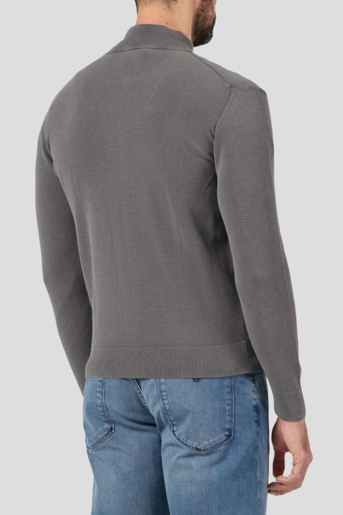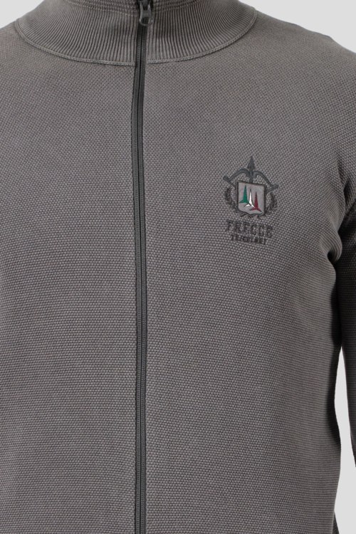 Детали: Мужской серый кардиган из хлопка и лиоцелла от Aeronautica Militare (Аэронавтика Милитари). Логотип на груди, высокий воротник, застежка-молния, классическая длина, манжеты и нижний край в рубчик