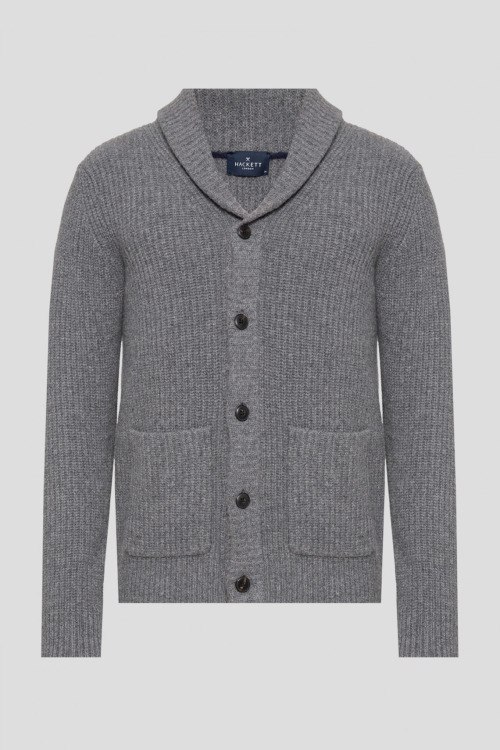 Детали: Мужской серый шерстяной кардиган от Hackett (Хаккетт). Классическая вязка, отложной воротник, два передних кармана, застежка на пуговицы, классическая длина. Длина рукава: длинный, для размера - 65 см, обхват груди: для размера М - 103 см, обхват талии: для размера М - 103 см, длина изделия по среднему шву спинки от горловины: для размера М - 66 см