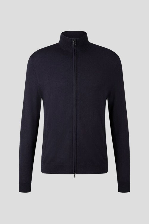 Детали: Мужской темно-синий шерстяной кардиган Oscar от Bogner (Богнер). Высокий воротник, застежка-молния, классическая длина, ребристые манжеты и нижний край
