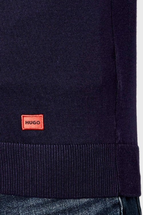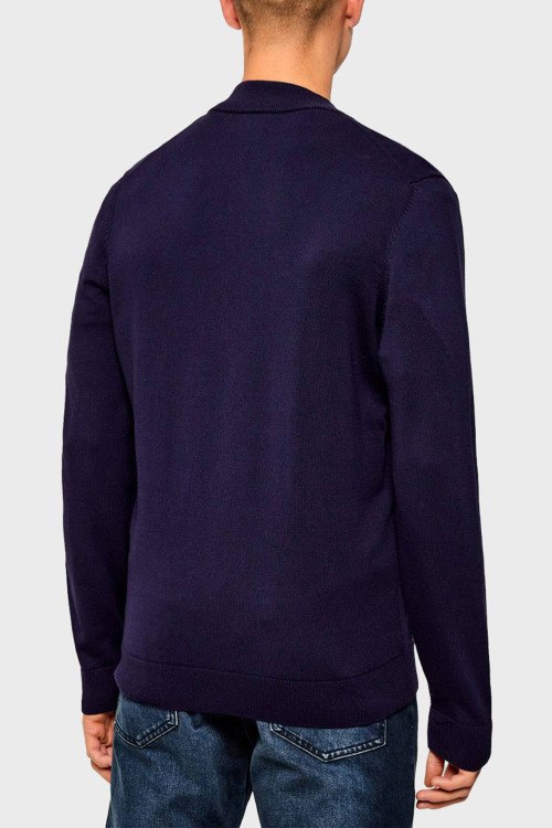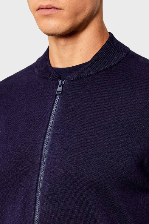 Детали: Мужской темно-синий хлопковый кардиган San Jaque от Hugo by Hugo Boss (Хуго бай Хуго Босс). Нашивка с логотипом, воротник-стойка, застежка-молния, классическая длина, ребристые манжеты и нижний край