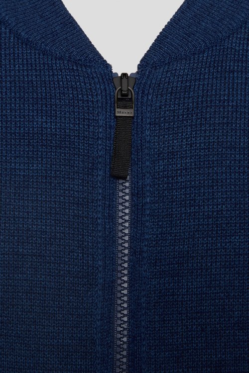 Детали: Мужской темно-синий кардиган из хлопка и шерсти от Maerz (Маерз). классическая длина, застежка на молнию, манжеты и низ изделия в рубчик, патч-лого. Измерения: длина рукава: длинный, для размера 50 - 79 см, обхват груди: для размера 50 - 110 см, обхват талии: для размера 50 - 110 см, длина изделия по среднему шву спинки от горловины: для размера 50 - 69 см