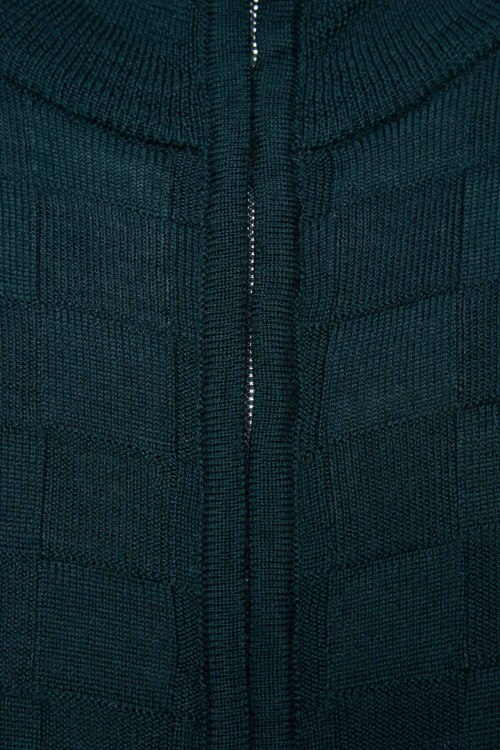 Детали: Мужской темно-зеленый шерстяной кардиган от Tombolini (Томболини). Фактурная вязка, воротник-стойка, застежка-молния, классическая длина. Длина рукава: длинный, для размера 52 - 64 см, обхват груди: для размера 52 - 118 см, обхват талии: для размера 52 - 110 см, длина изделия по среднему шву спинки от горловины: для размера 52 - 70 см
