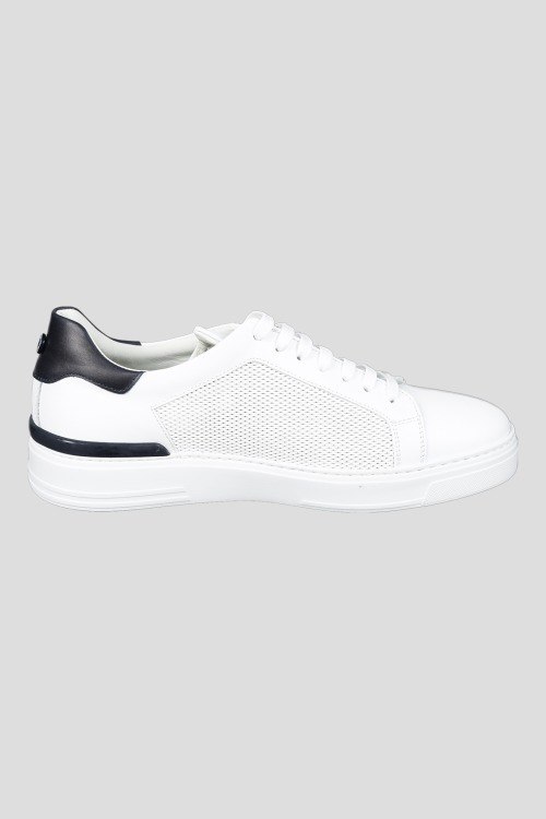 Детали: Кеды белого цвета из натуральной кожи. Однотонная модель, закругленный носок, спереди классическая шнуровка, перфорация сбоку изделия, плоская подошва