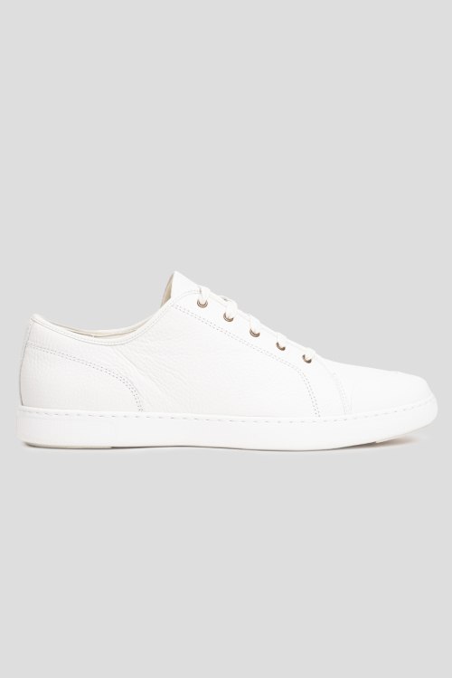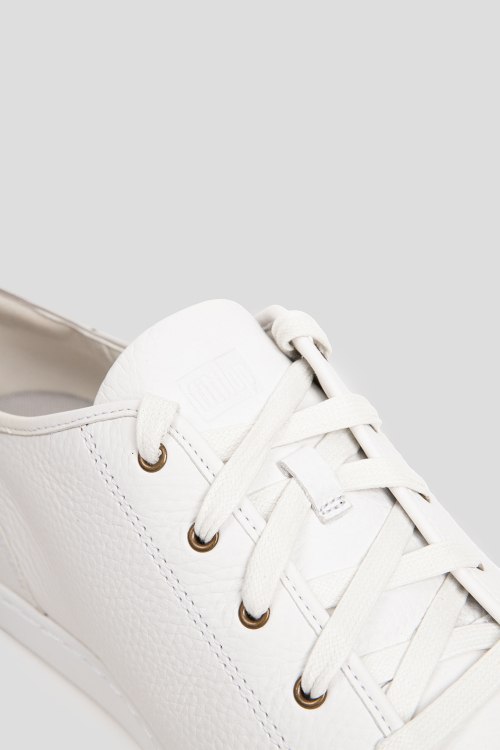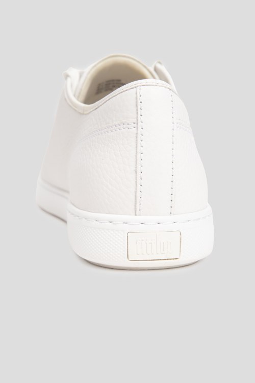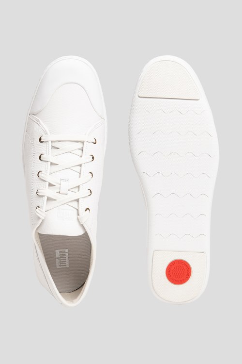 Детали: Мужские белые кожаные кеды Christophe Toe-Cap от FitFlop (Фитфлоп). Модель из зернистой кожи, классическая шнуровка, закругленный носок, резиновая подошва. Размер US 12/EU 45 - большемерят на пол размера