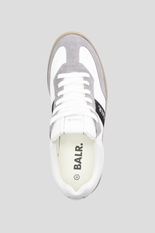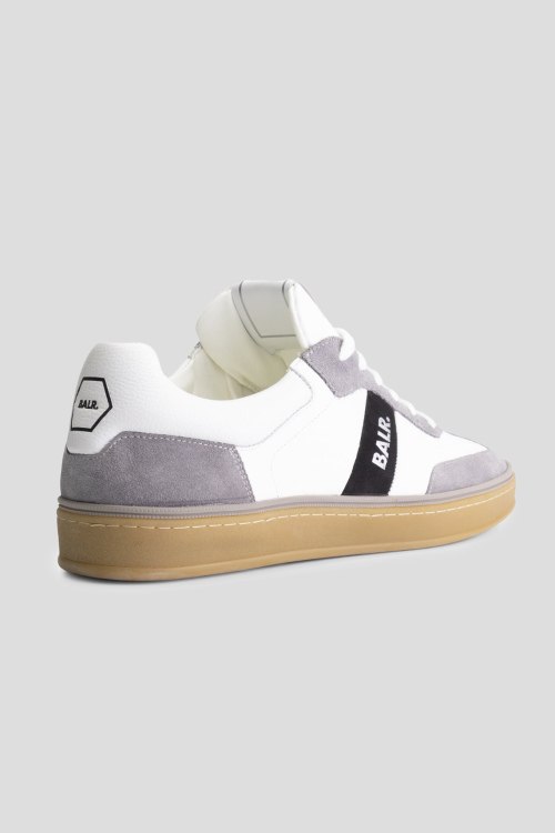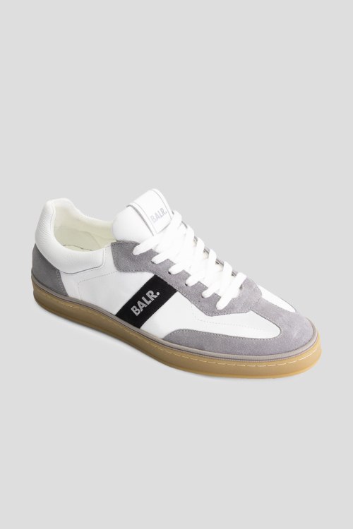 Детали: Мужские бело-серые кеды из кожи и замши London Classic от Balr. (Барл.). Комбинация цветов и материалов, логотип сбоку и на язычке, классическая шнуровка, закругленный носок