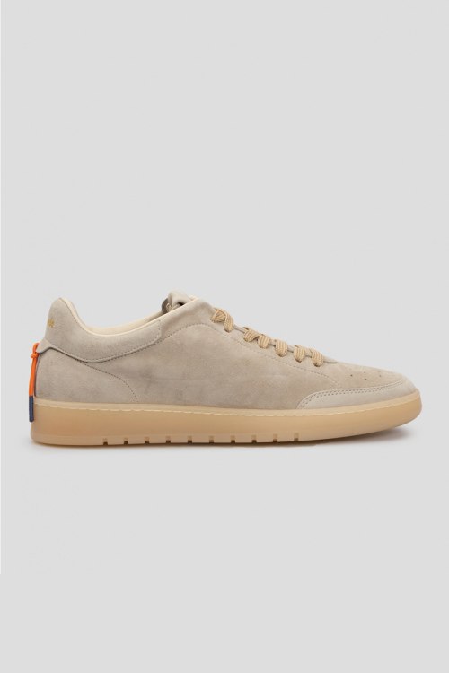 Детали: Мужские бежевые кеды из натуральной замши от Barracuda (Барракуда). Закругленный носок с перфорацией, классическая шнуровка, логотип бренда, рельефная подошва
