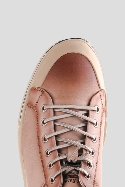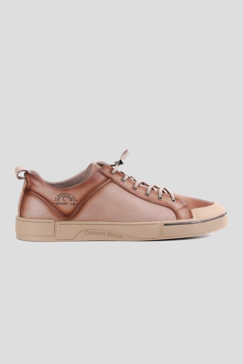 Детали: Мужские бежевые кеды из натуральной кожи от Le Berdes (Ле Бердес). Принт сбоку, классическая шнуровка, закругленный носок, петля для подтягивания