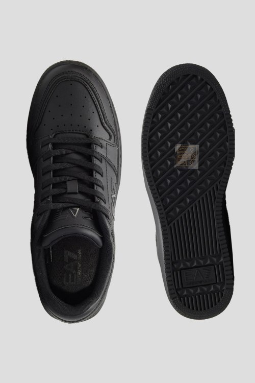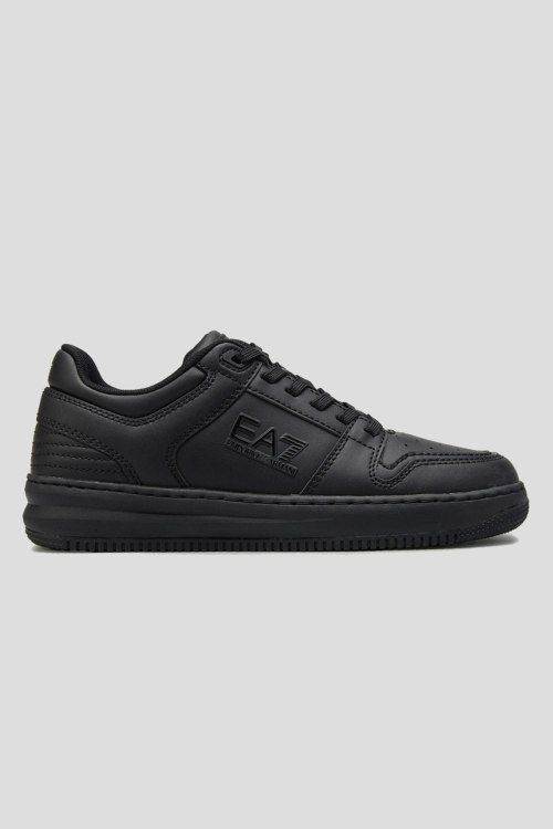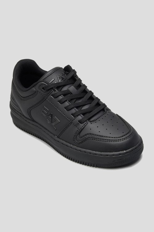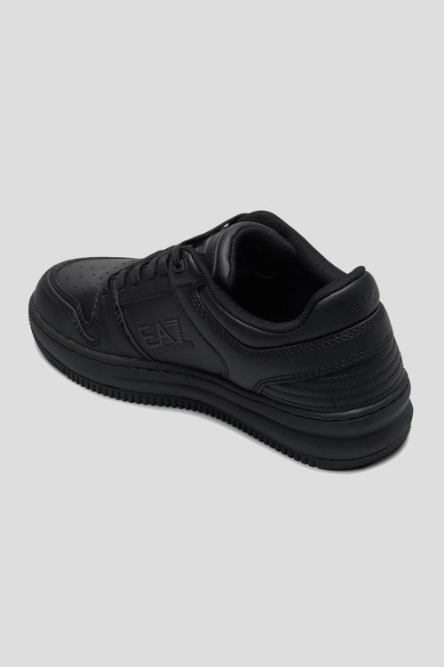Детали: Мужские черные кеды из экокожи от EA7 Emporio Armani (ЕА7 Эмпорио Армани). Модель из гладкой кожи, логотип сбоку и на язычке, классическая шнуровка, закругленный носок