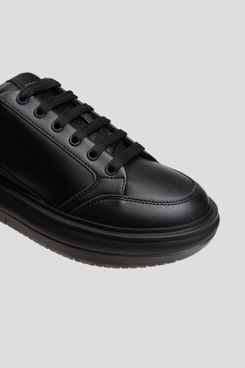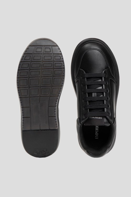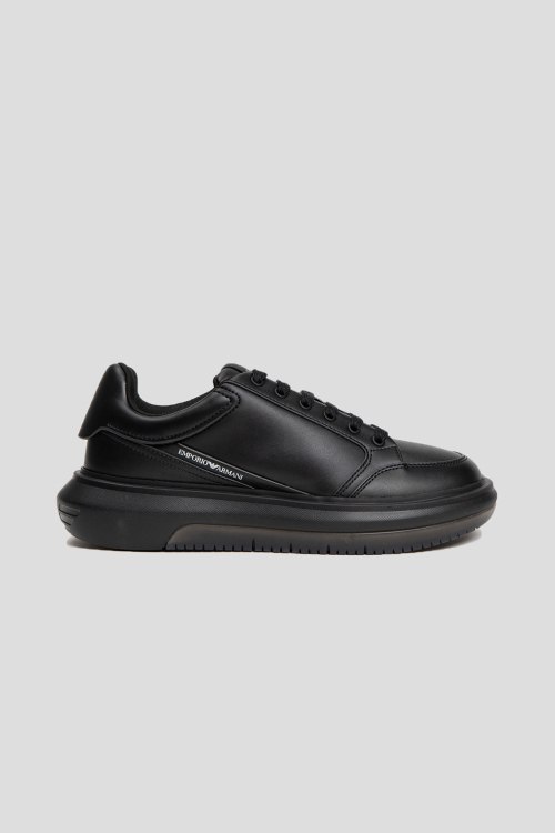 Детали: Мужские черные кожаные кеды от Emporio Armani (Эмпорио Армани). Модель из комбинированной кожи, логотип сбоку и на язычке, классическая шнуровка, закругленный носок