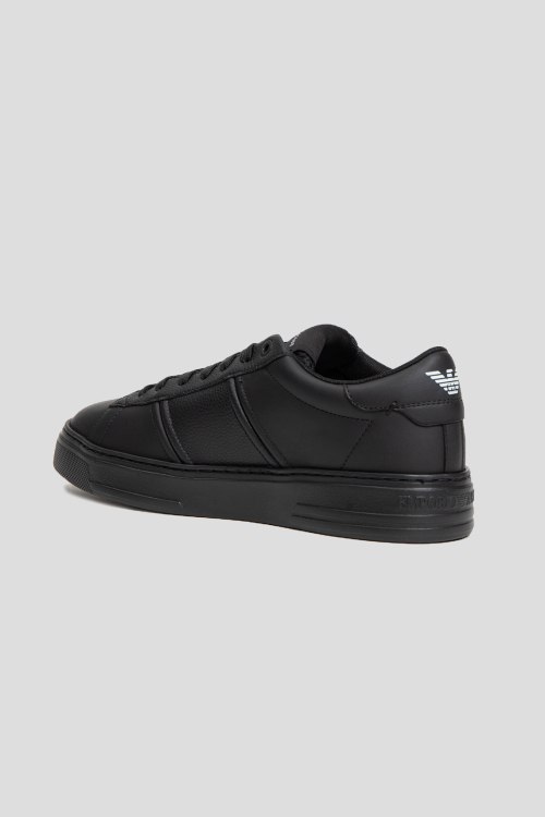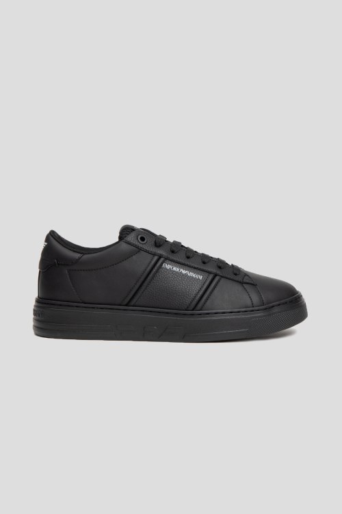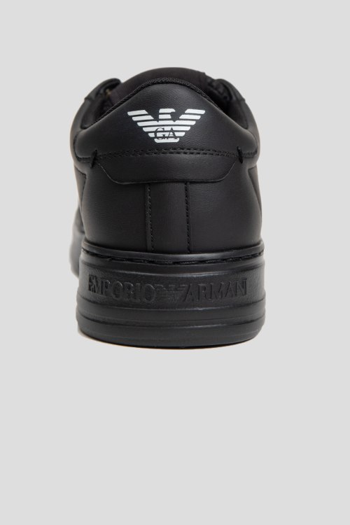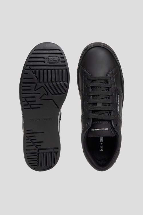 Детали: Мужские черные кожаные кеды от Emporio Armani (Эмпорио Армани). Модель из гладкой и зернистой кожи, логотип сбоку и на язычке, классическая шнуровка, закругленный носок, резиновая подошва