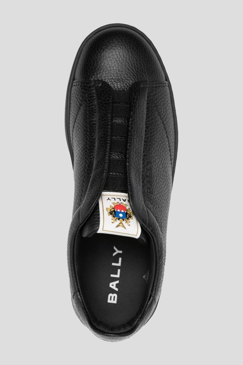 Детали: Мужские черные кожаные кеды Retro Crest от Bally (Балли). Модель из зернистой кожи, логотип сбоку и на язычке, без шнуровки, закругленный носок