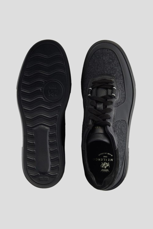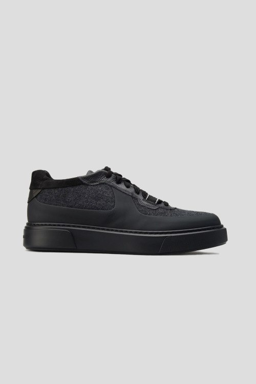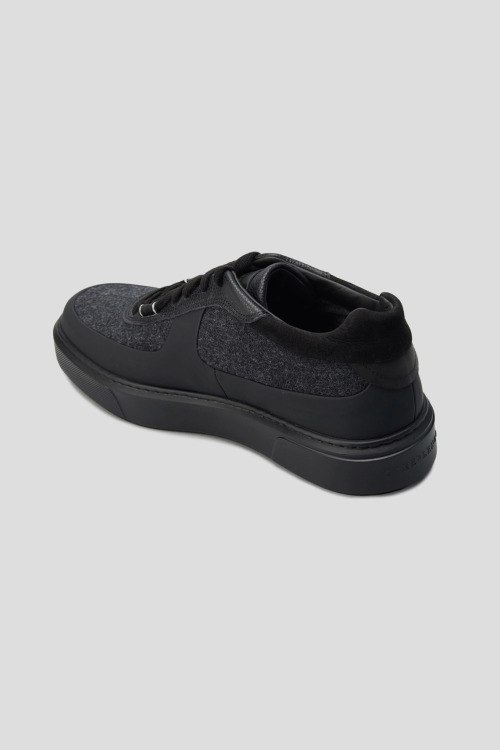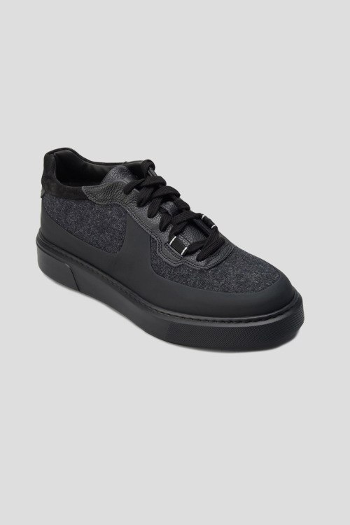 Детали: Мужские черные кеды из текстиля и резины от Camerlengo (Камерленго). Комбинация материалов, логотип на язычке, классическая шнуровка, закругленный носок, резиновая подошва