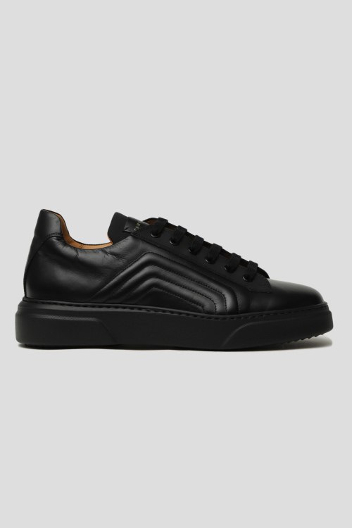 Детали: Мужские черные кожаные кеды от Camerlengo (Камерленго). Закругленный носок, спереди классическая шнуровка, рельефная подошва, нашивка с логотипом бренда на язычке