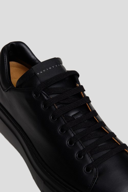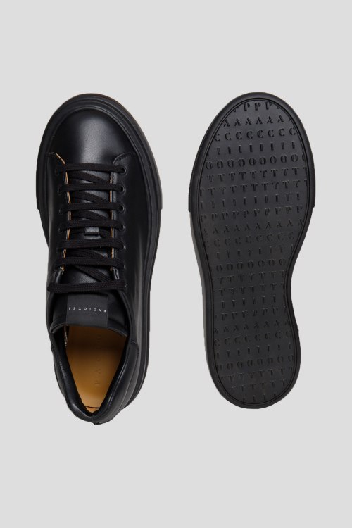 Мужские черные кеды из натуральной кожи от Cesare Paciotti (Чезаре Пациотти). Закругленный носок, спереди классическая шнуровка, патч-лого, резиновая подошва, кожаная стелька