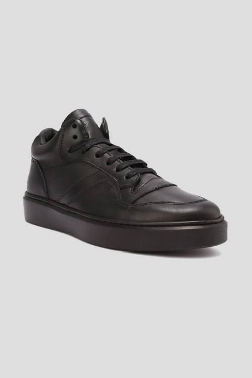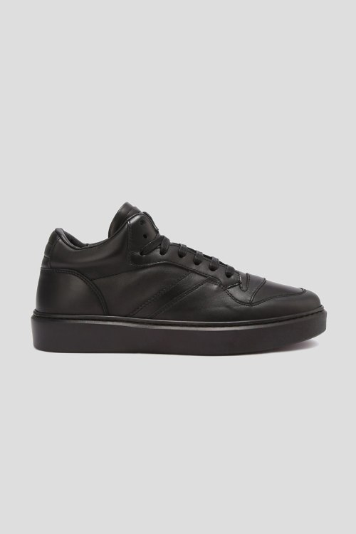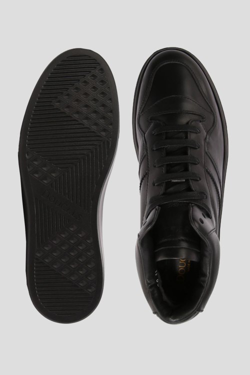 Детали: Мужские черные кеды из натуральной кожи от Doucal's (Дукалс). Закругленный носок, спереди классическая шнуровка, рельефная подошва в тон изделия, тиснение с логотипом бренда