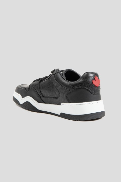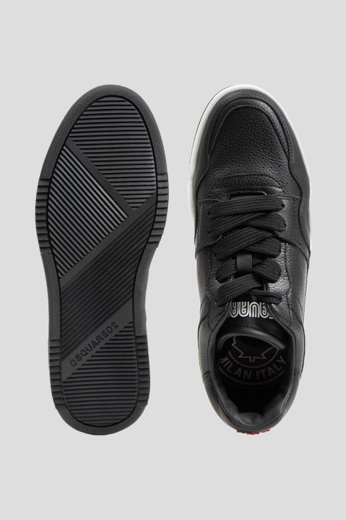 Детали: Мужские черные кеды из натуральной кожи от Dsquared2 (Дискваред). Закругленный носок, спереди шнуровка, патч-лого, резиновая подошва, текстильная стелька