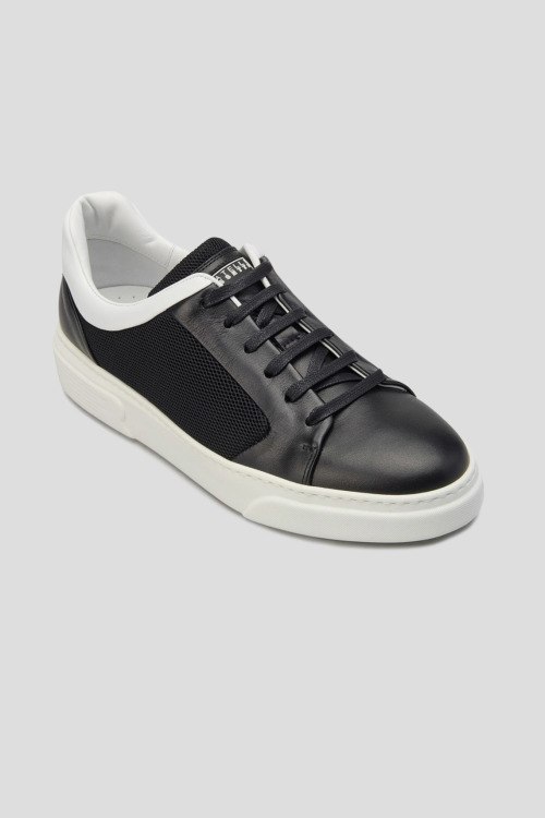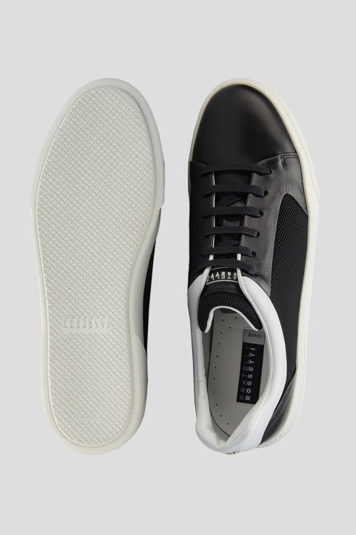 Детали: Мужские черные кеды из кожи и текстиля от Fratelli Rossetti (Фрателли Роззетти). Комбинация материалов, логотип на язычке, классическая шнуровка, закругленный носок, белая подошва
