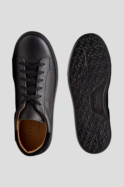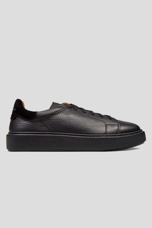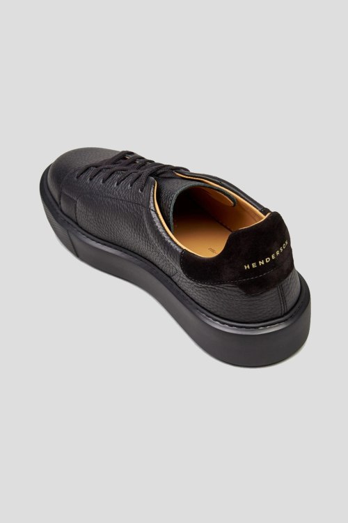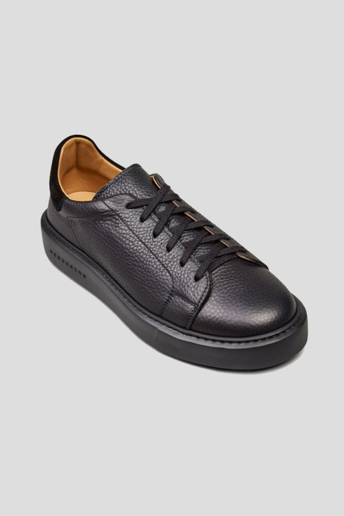 Детали: Мужские черные кожаные кеды от Henderson Baracco (Хендерсон Баракко). Модель из зернистой кожи, логотип на пятке, классическая шнуровка, закругленный носок