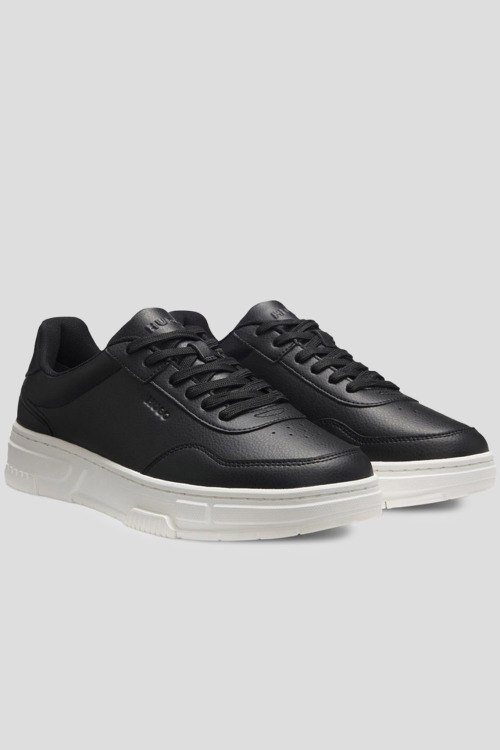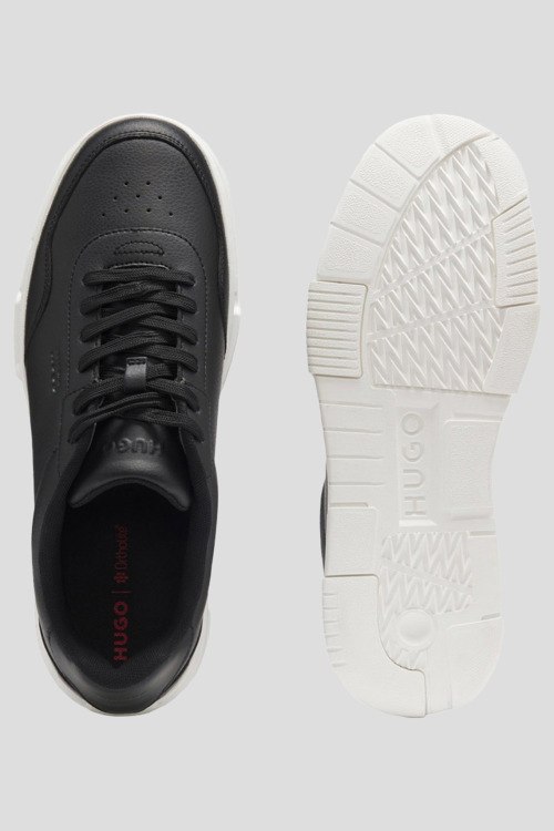 Детали: Мужские черные кеды из экокожи Yarrow от Hugo by Hugo Boss (Хуго бай Хуго Босс). Модель из зернистой кожи, логотип сбоку и на язычке, классическая шнуровка, закругленный носок, белая подошва