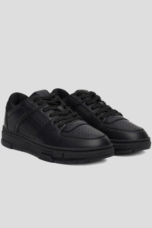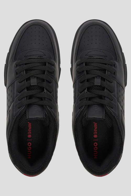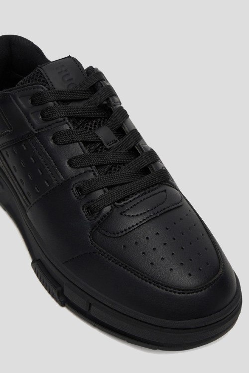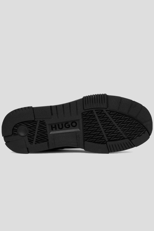 Детали: Мужские черные кеды из экокожи Yarrow от Hugo by Hugo Boss (Хуго бай Хуго Босс). Модель из гладкой кожи, логотип сбоку и на язычке, классическая шнуровка, закругленный носок, резиновая подошва