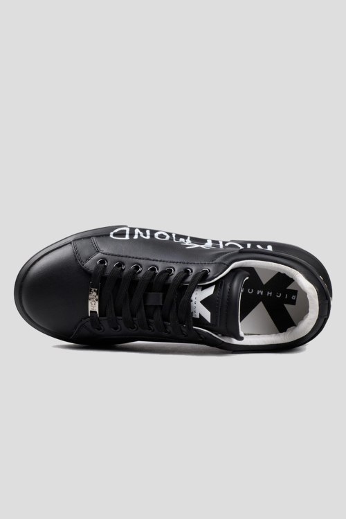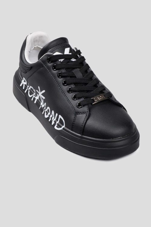 Детали: Мужские черные кожаные кеды от John Richmond (Джон Ричмонд). Модель из гладкой кожи, логотип сбоку и на язычке, классическая шнуровка, закругленный носок, кожаная стелька