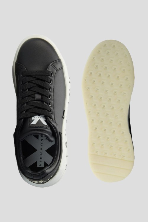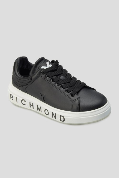 Детали: Мужские черные кожаные кеды от John Richmond (Джон Ричмонд). Модель из гладкой кожи, логотип сбоку и на язычке, классическая шнуровка, закругленный носок, белая брендированная подошва
