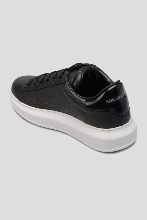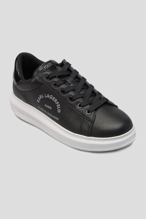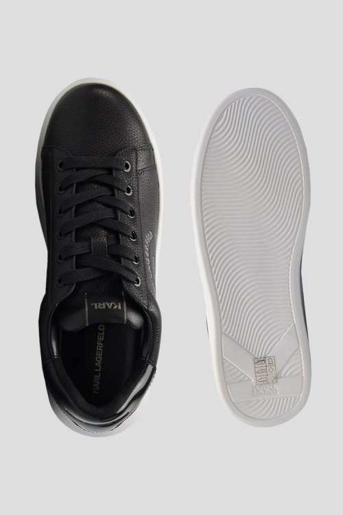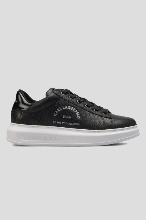 Детали: Мужские черные кожаные кеды Kapri Maison от Karl Lagerfeld (Карл Лагерфельд). Модель из зернистой кожи, логотип сбоку и на язычке, классическая шнуровка, закругленный носок, белая подошва