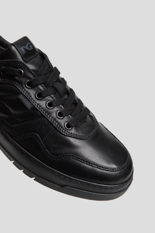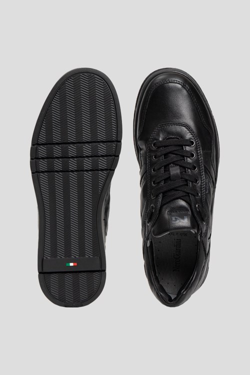 Детали: Мужские черные кожаные кеды от Nero Giardini (Неро Джардини). Модель из гладкой кожи, стеганый дизайн, логотип на язычке, классическая шнуровка, закругленный носок, резиновая подошва