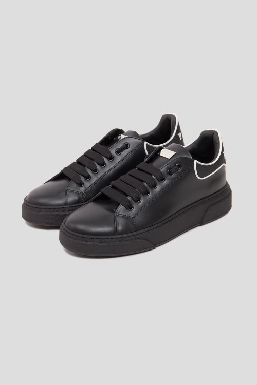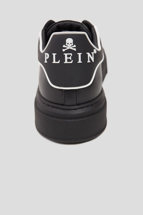 Детали: Мужские черные кеды Big Bang из натуральной кожи от Philipp Plein (Филипп Плейн). Закругленный носок, спереди классическая шнуровка, брендированная вставка на заднике, резиновая подошва в тон изделия, металлический логотип бренда на язычке