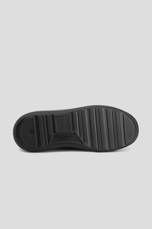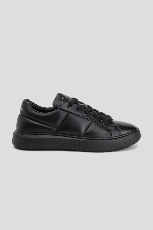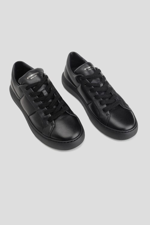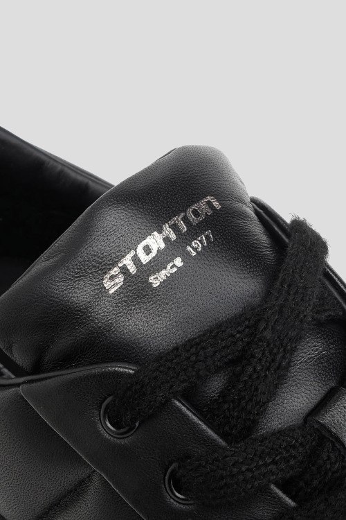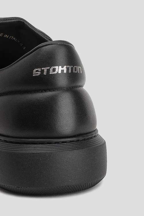 Детали: Мужские черные кожаные кеды от Stokton (Стоктон). Модель из гладкой кожи, логотип на пятке и на язычке, классическая шнуровка, закругленный носок