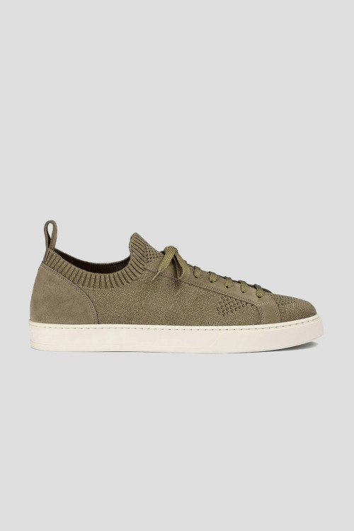 Детали: Мужские оливковые кеды из текстиля от Doucal's (Дукалс). Закругленный носок, спереди шнуровка, резиновая подошва, петля для подтягивания, кожаная стелька с логотипом бренда