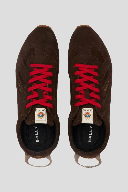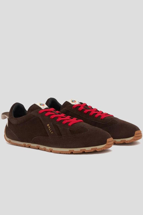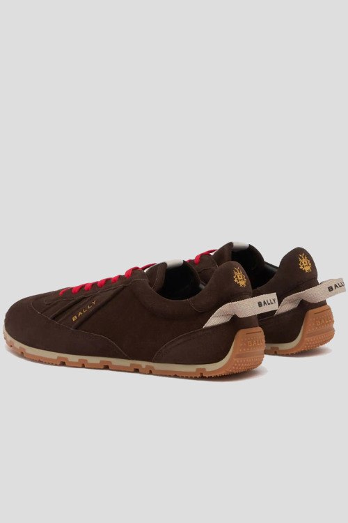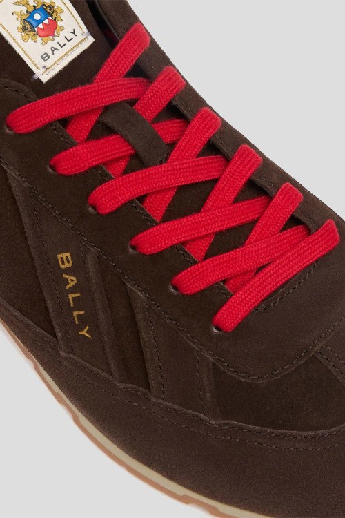 Детали: Мужские коричневые кеды из натуральной замши от Bally (Балли). Закругленный носок, контрастная шнуровка, логотип бренда, рельефная подошва, петли для подтягивания