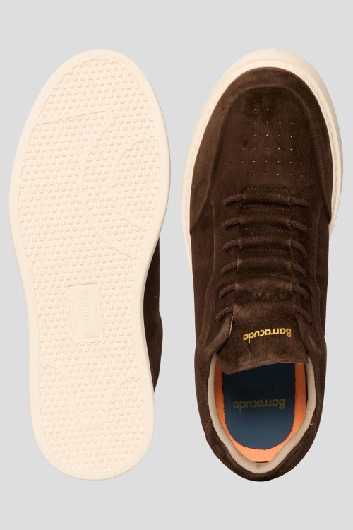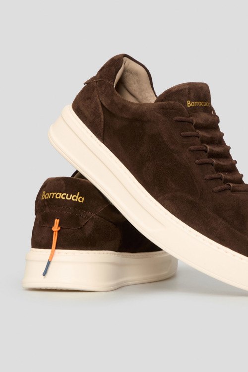 Детали: Мужские темно-коричневые замшевые кеды от Barracuda (Барракуда). Логотип на язычке и на пятке, классическая шнуровка, закругленный носок, кожаная стелька. Высота подошвы: 4 см