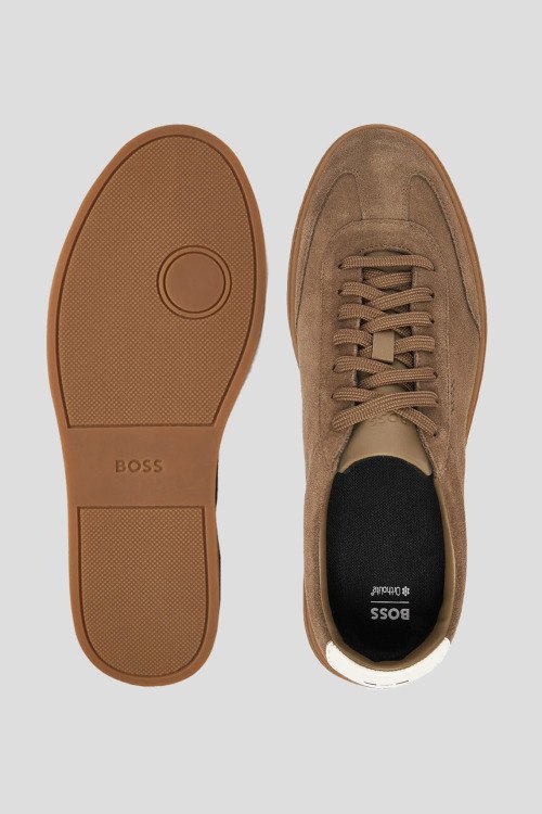 Детали: Мужские коричневые кеды из натуральной замши от Hugo Boss (Хуго Босс). Закругленный носок, спереди классическая шнурвока, резиновая подошва в тон изделия, логотип бренда