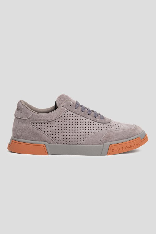 Детали: Мужские серые замшевые кеды от Dolce & Gabbana (Дольче энд Габбана). Дизайн с перфорацией, логотип на язычке и на пятке, классическая шнуровка, закругленный носок. Обувь категории outlet, коробка может быть повреждена