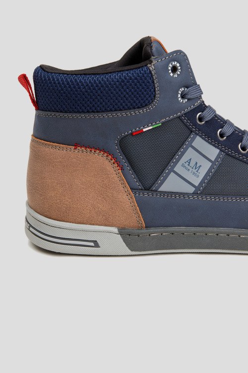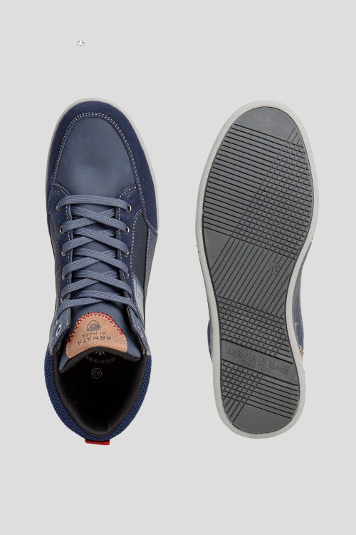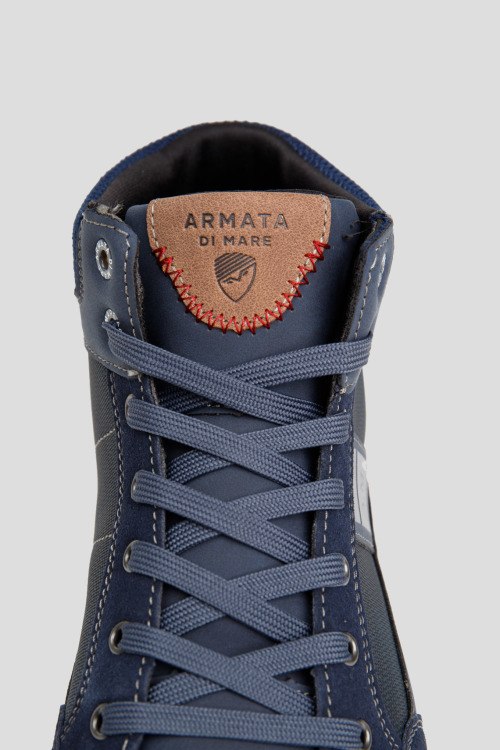Мужские синие ботинки из текстиля от Armata di Mare (Армата ди Маре). Закругленный носок, спереди классическая шнуровка. дизайн с комбинацией цветов и материалов, петля для подтягивания, патч-лого