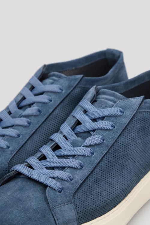 Детали: Мужские темно-синие кеды из натуральной замши от Fabi (Фаби). Закругленный носок, спереди шнуровка, перфорированные вставки, резиновая подошва, логотип бренда