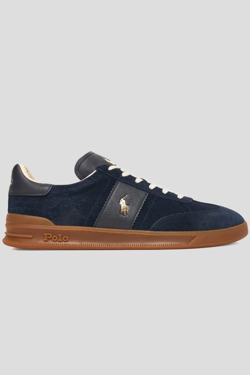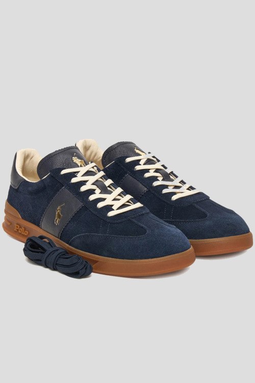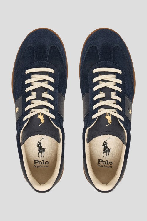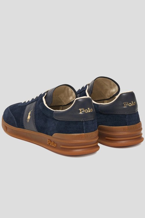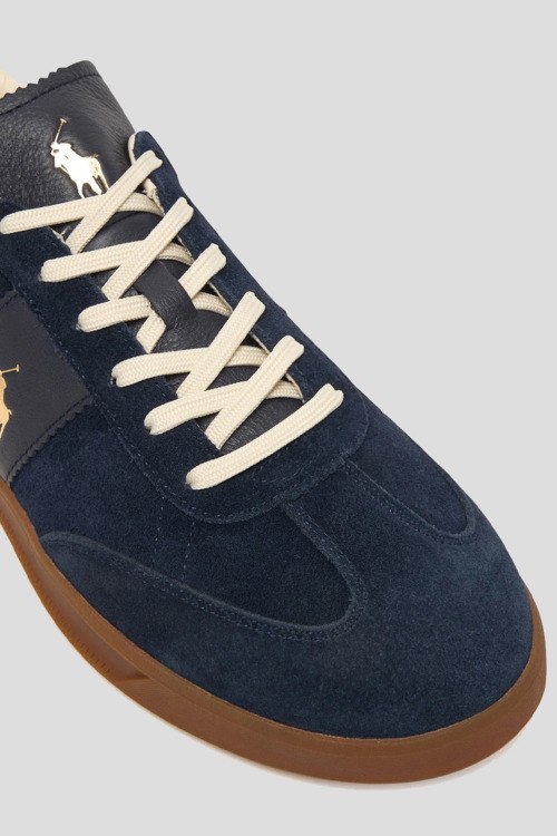 Детали: Мужские синие кеды из замши от Polo Ralph Lauren (Поло Ральф Лорен). Закругленный носок, спереди классическая шнуровка, резиновая подошва, логотип бренда, в комплекте шнурки в тон изделия