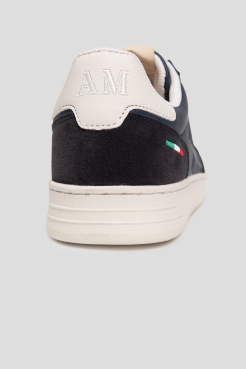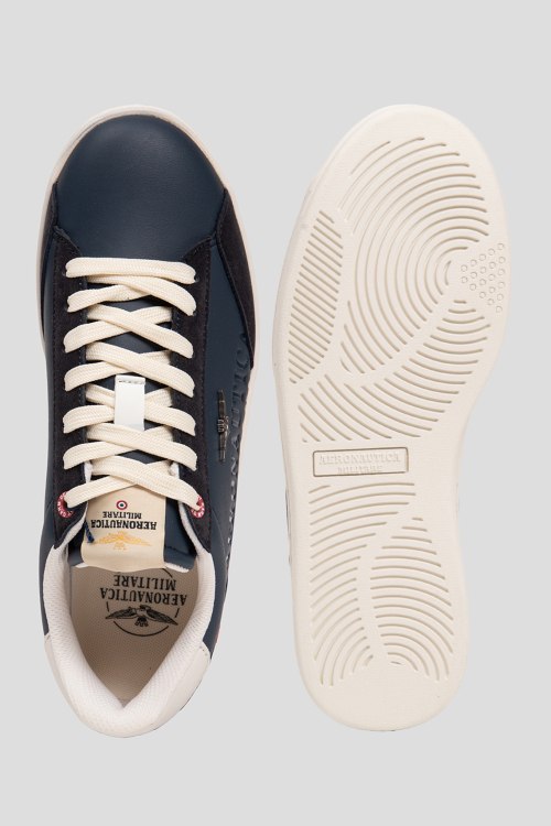 Детали: Мужские темно-синие кеды из экокожи от Aeronautica Militare (Аэронавтика Милитари). Модель из гладкой кожи, вставки из экозамши, логотип сбоку и на язычке, классическая шнуровка, закругленный носок, резиновая подошва
