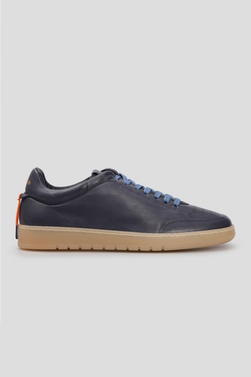 Детали: Мужские темно-синие кеды из натуральной кожи от Barracuda (Барракуда). Закругленный носок с перфорацией, спереди шнуровка, логотип бренда, рельефная подошва