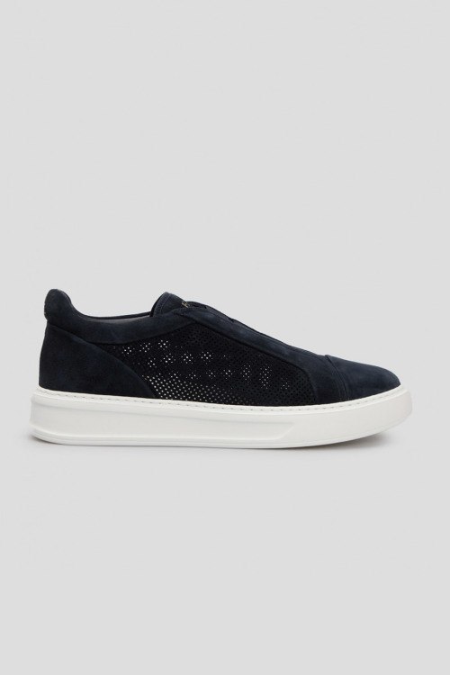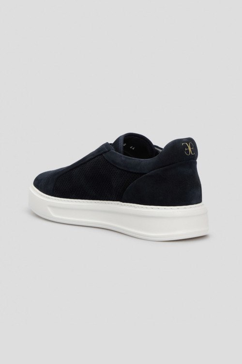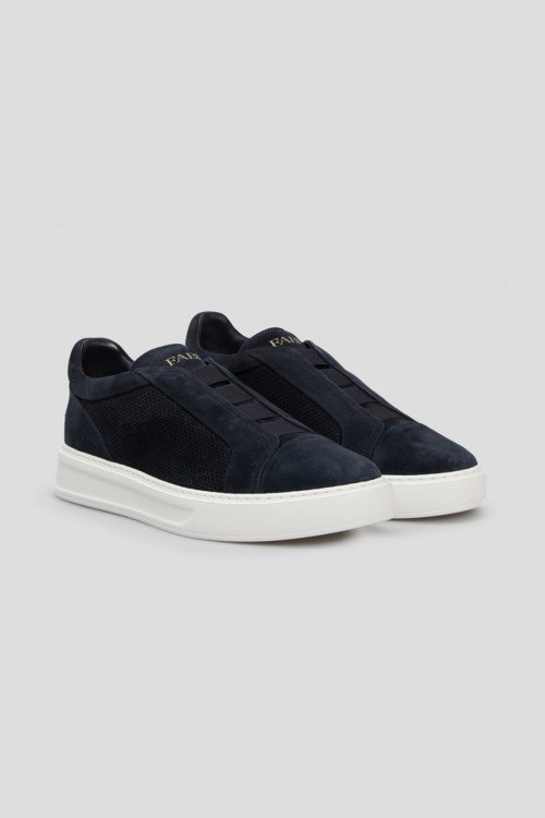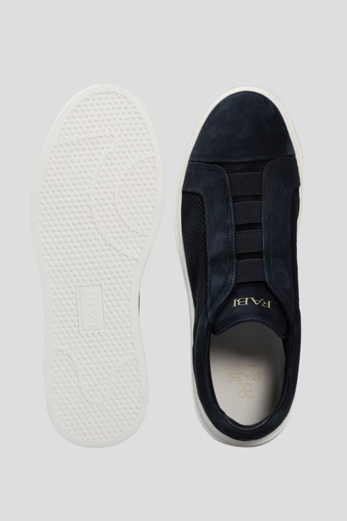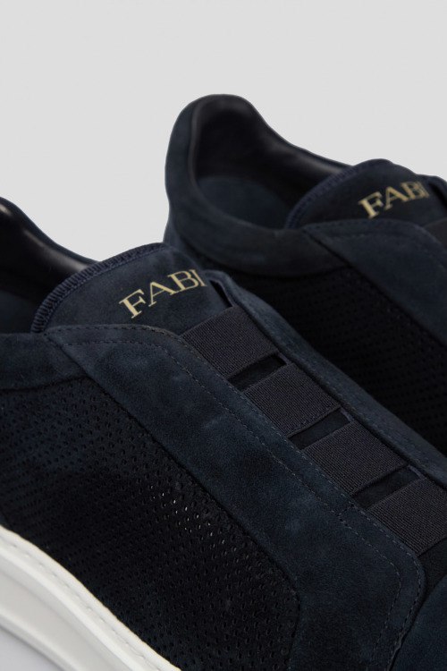 Детали: Мужские темно-синие замшевые кеды от Fabi (Фаби). Дизайн с перфорацией, логотип на язычке, эластичные резинки вместо шнуровки, закругленный носок. Высота подошвы: 4 см