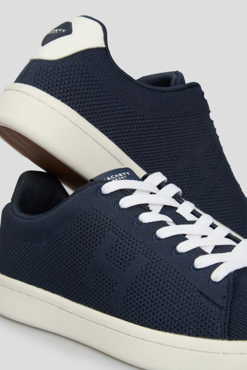 Детали: Мужские темно-синие текстильные кеды от Hackett (Хаккетт). Логотип сбоку и на язычке, классическая шнуровка, закругленный носок. Высота подошвы: 3 см