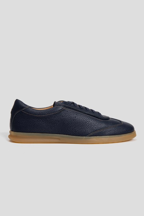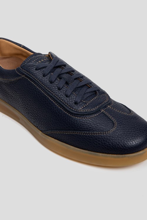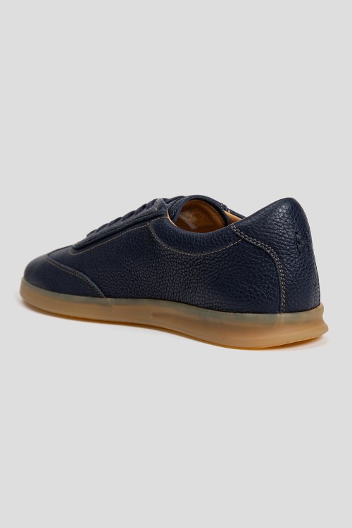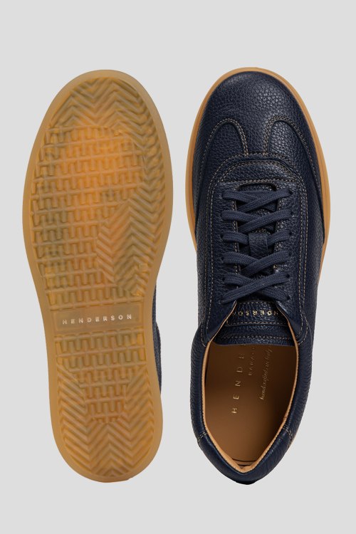 Детали: Мужские темно-синие кеды из натуральной кожи от Henderson Baracco (Хендерсон Баракко). Закругленный носок, спереди шнуровка, полиуретановая подошва