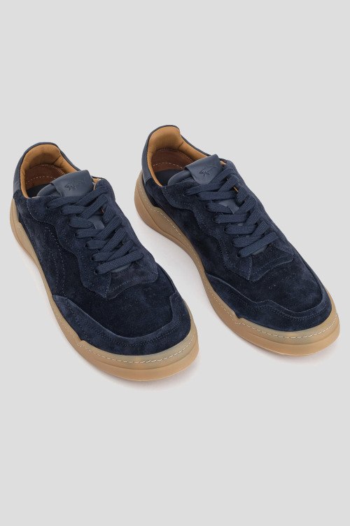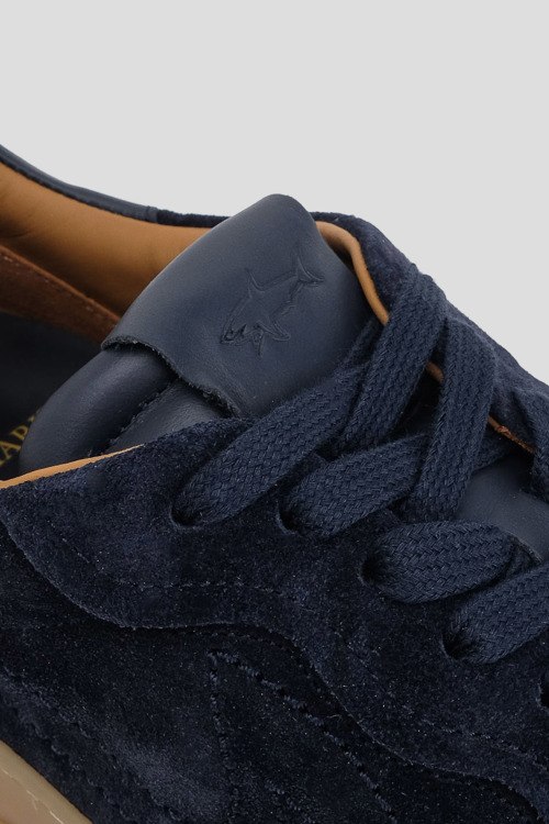 Детали: Мужские темно-синие кеды из натуральной кожи и замши от Paul & Shark (Пол энд Шарк). Закругленный носок, спереди шнуровка, патч-лого, контрастная подошва